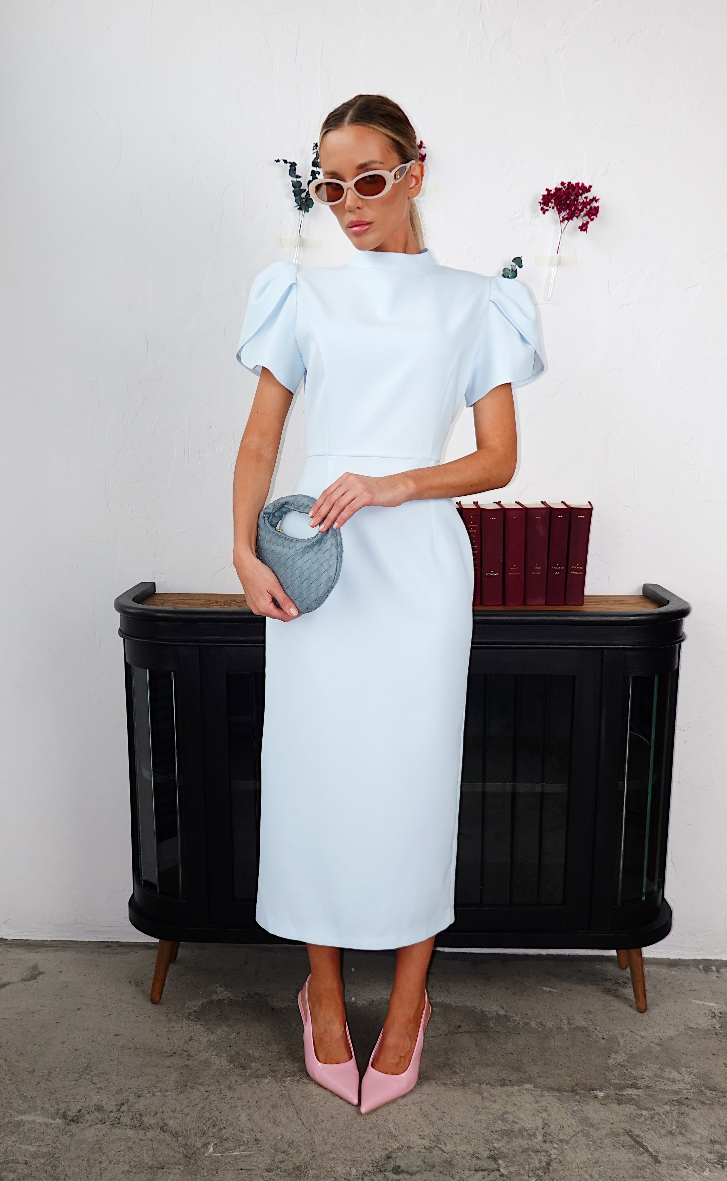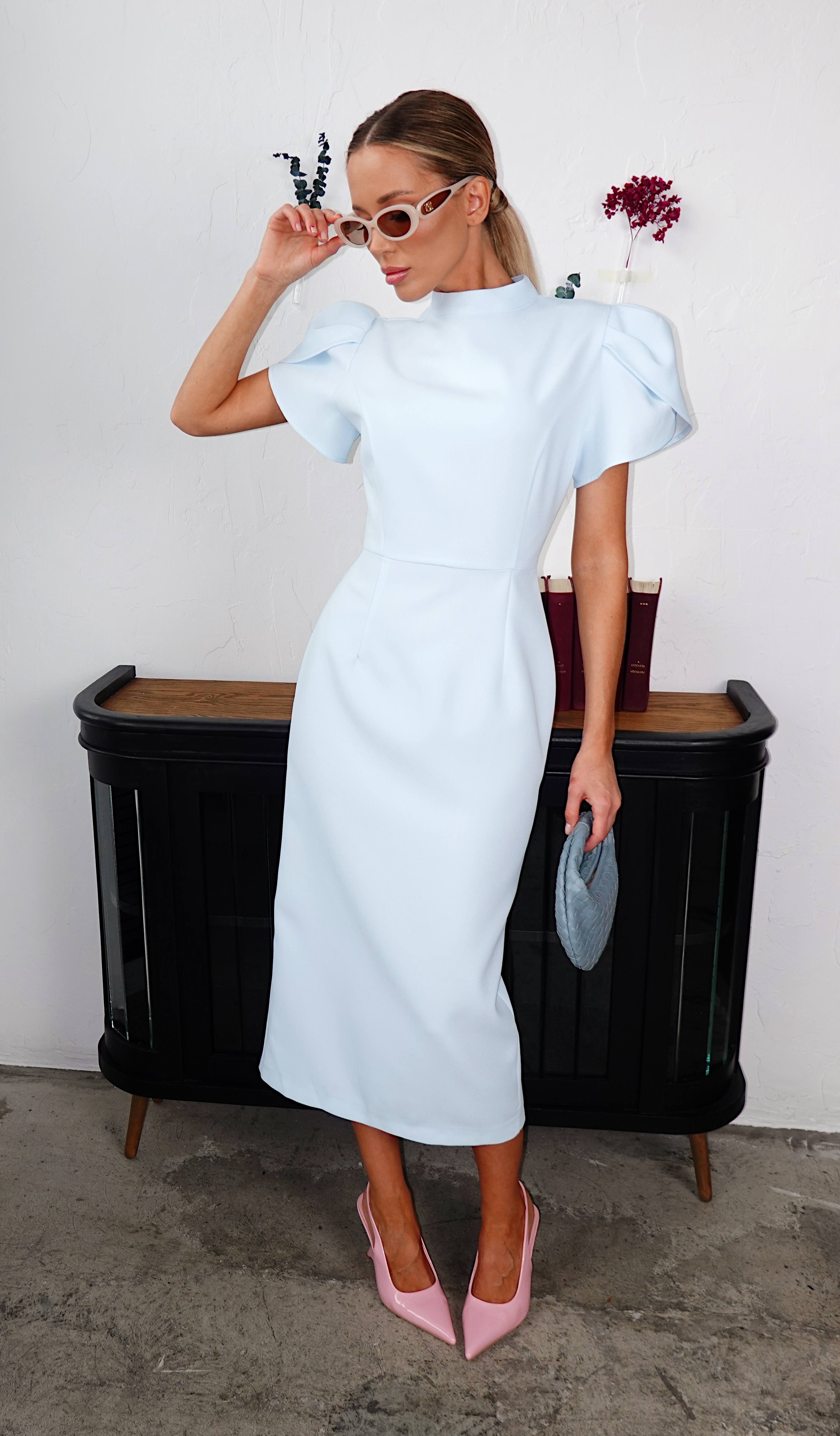 Платье в длине миди с акцентными рукавами