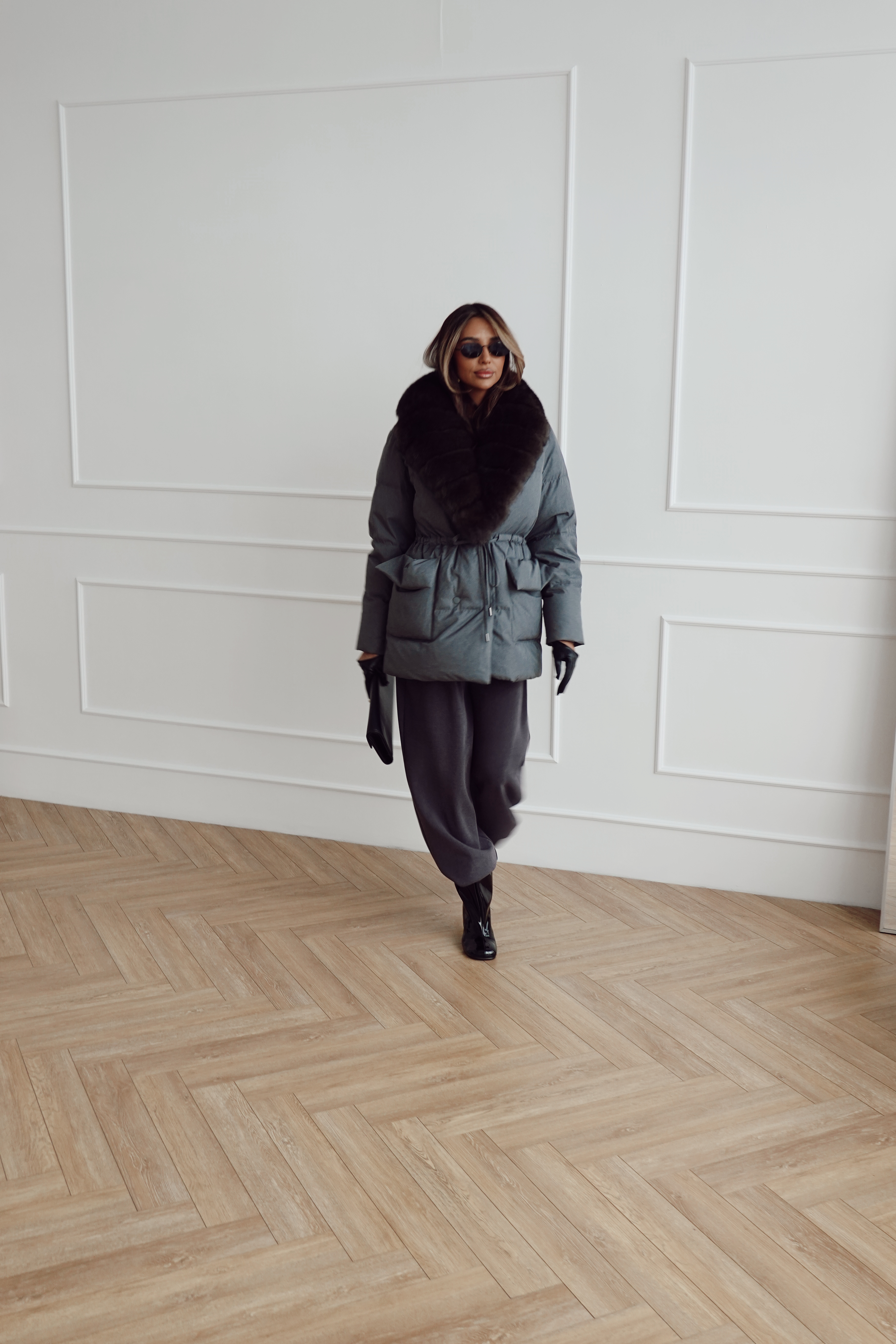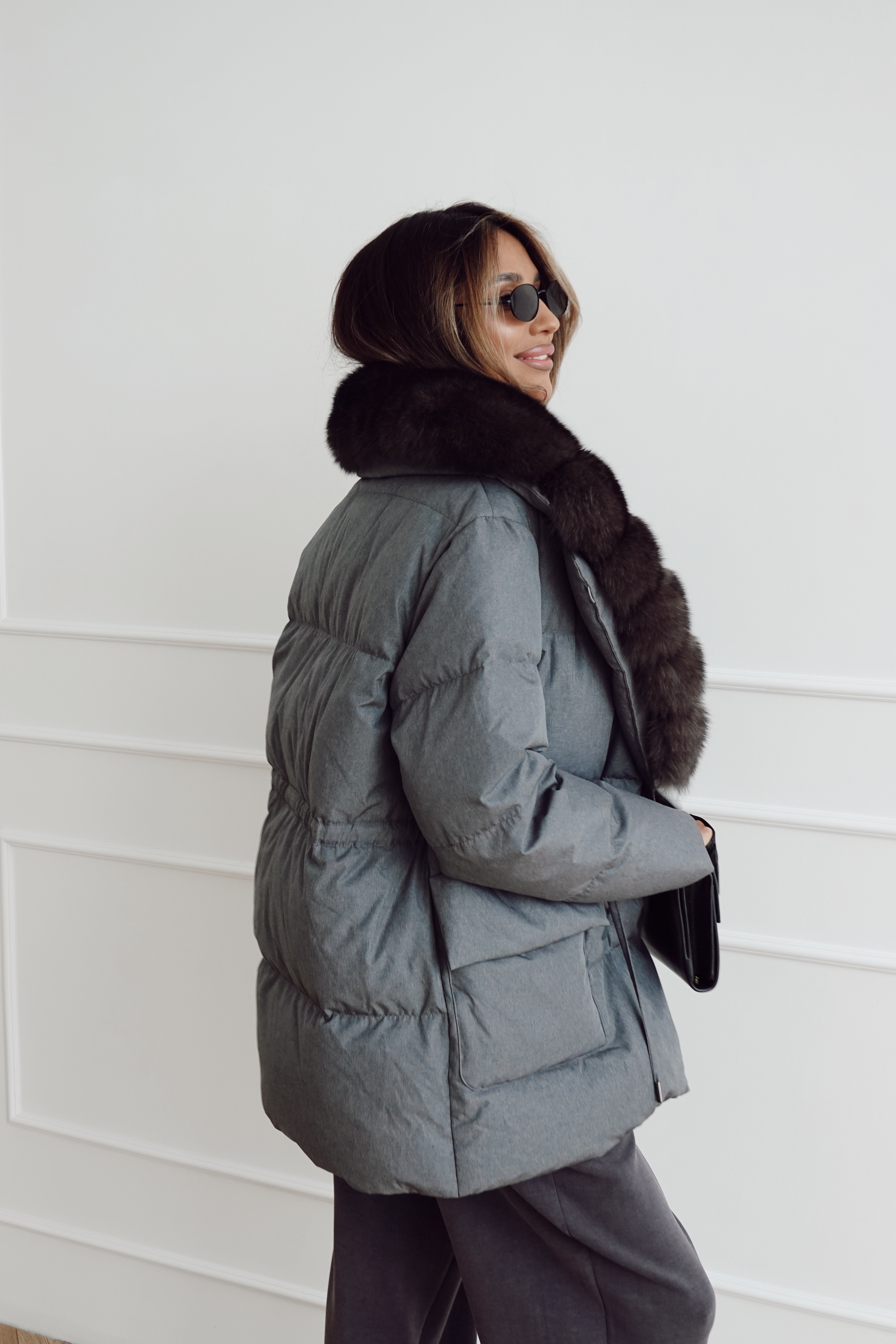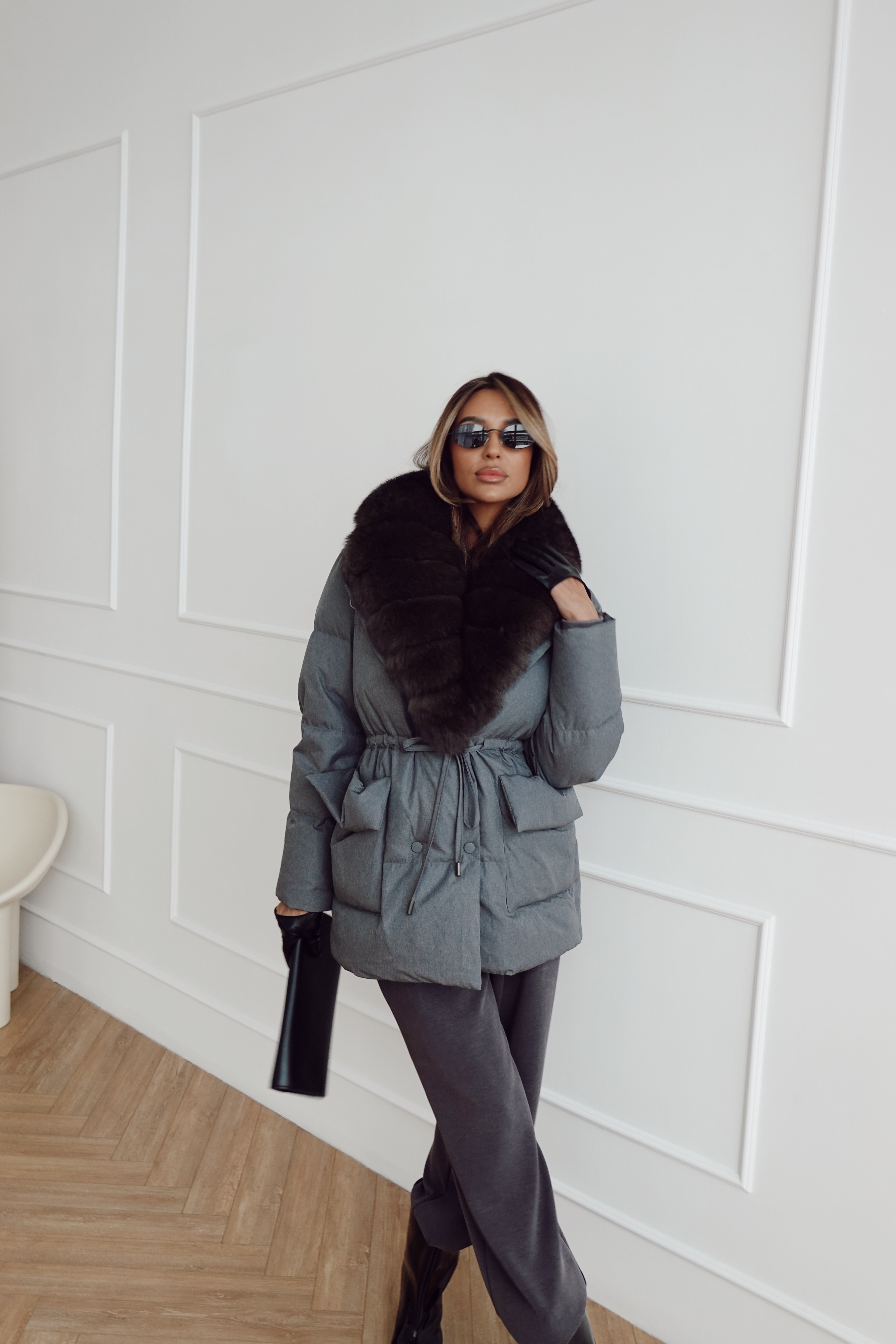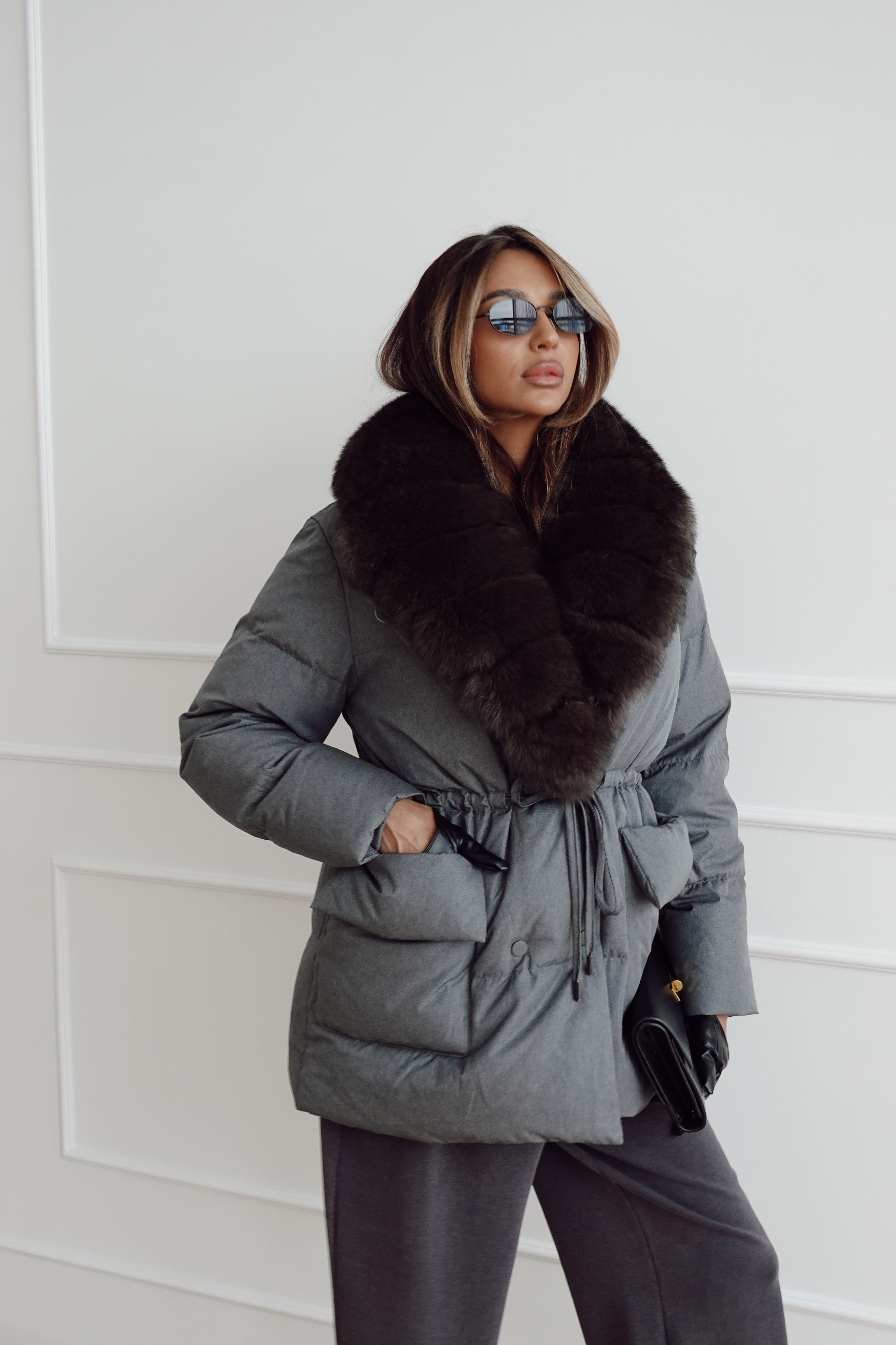 Пуховик на кулиске с английским воротником