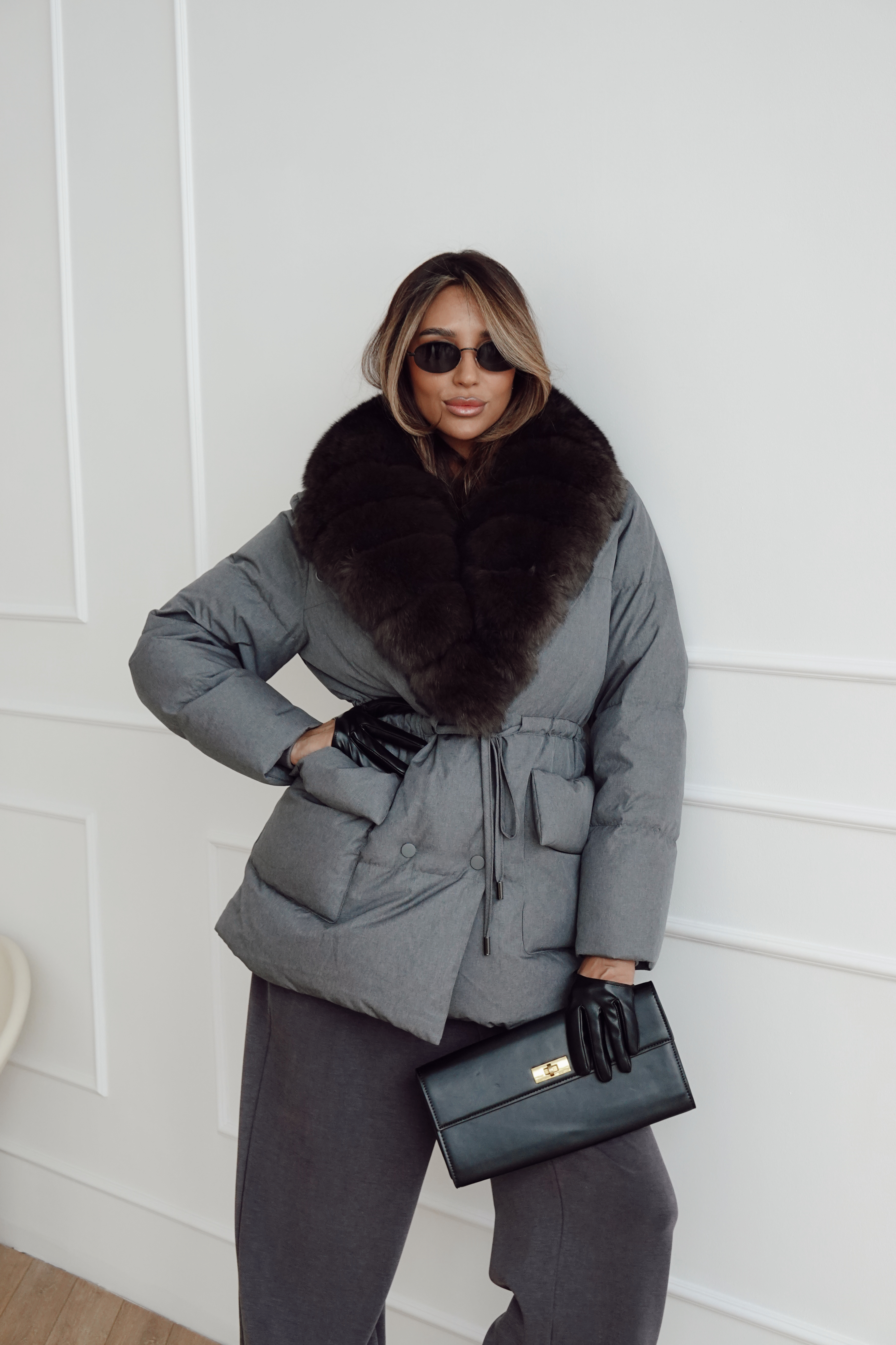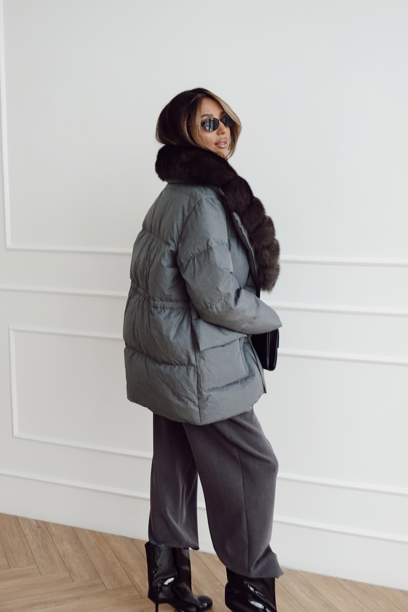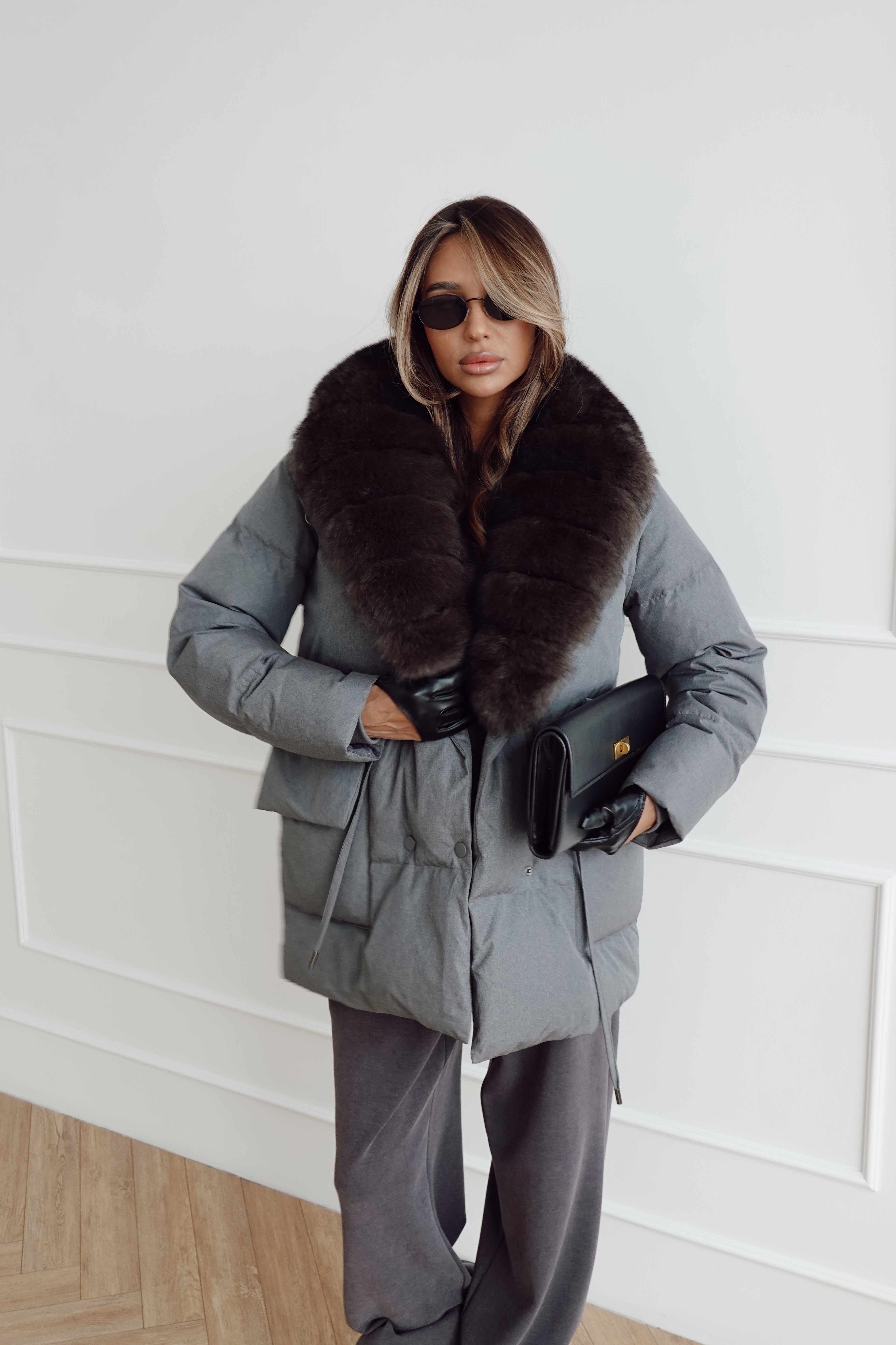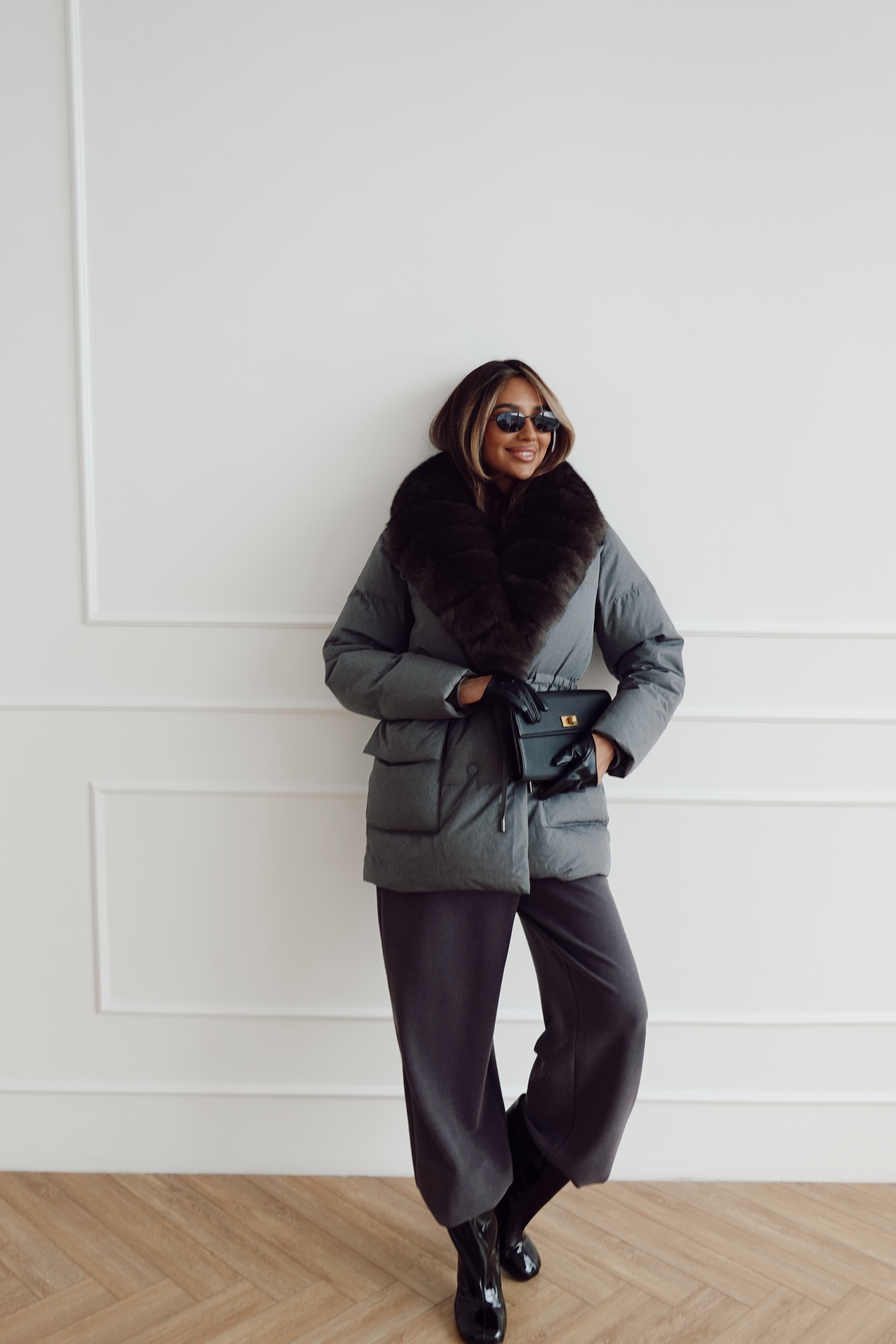 Пуховик на кулиске с английским воротником