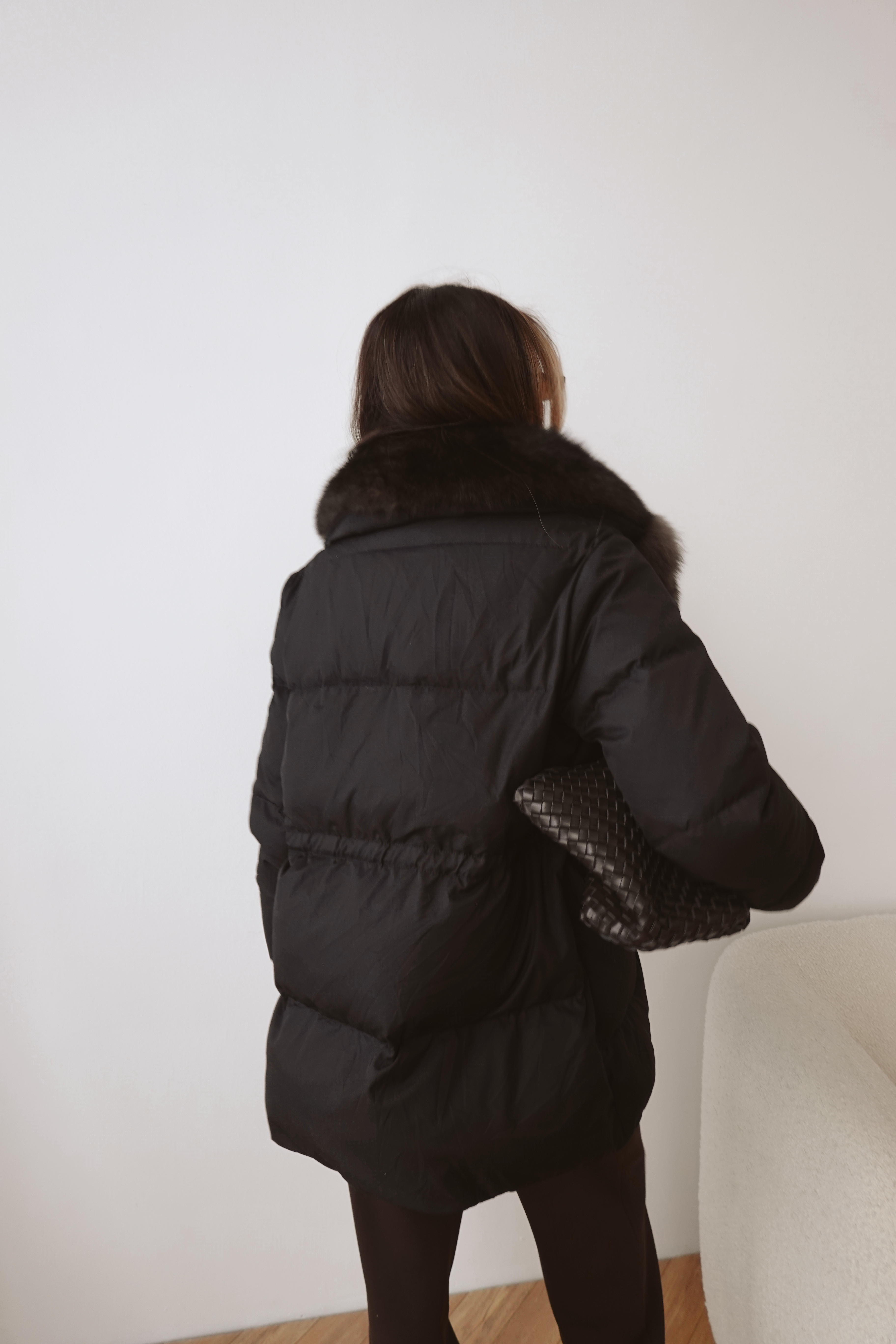Пуховик на кулиске с английским воротником