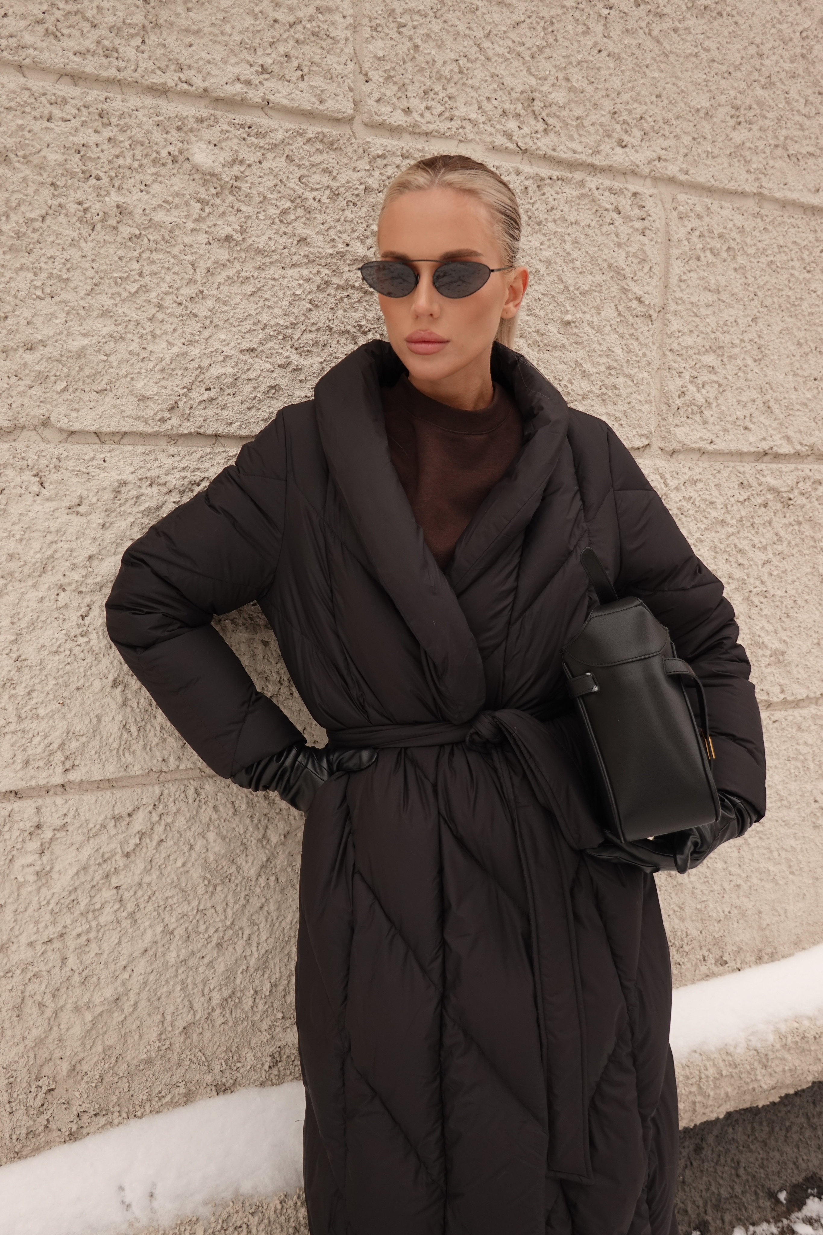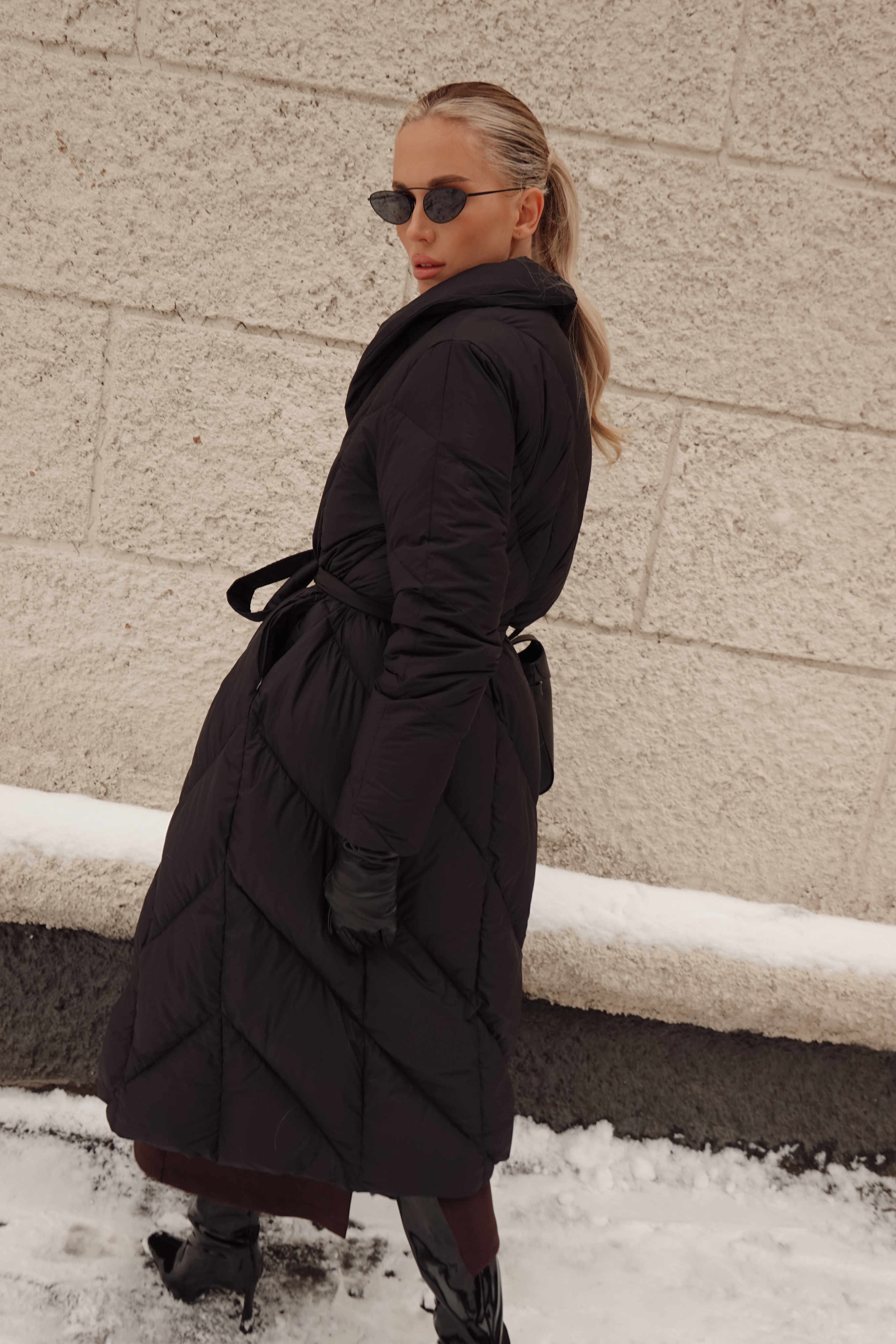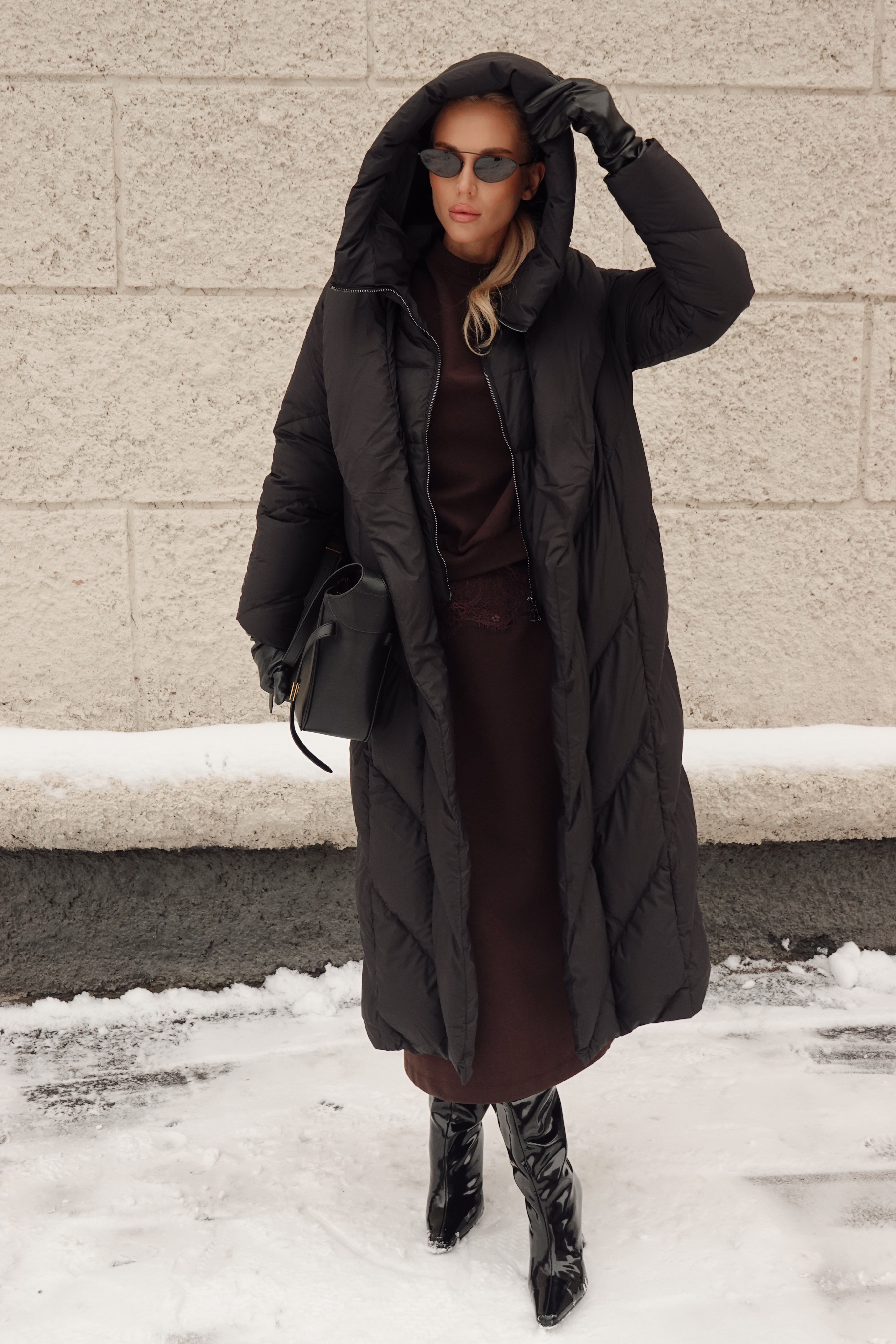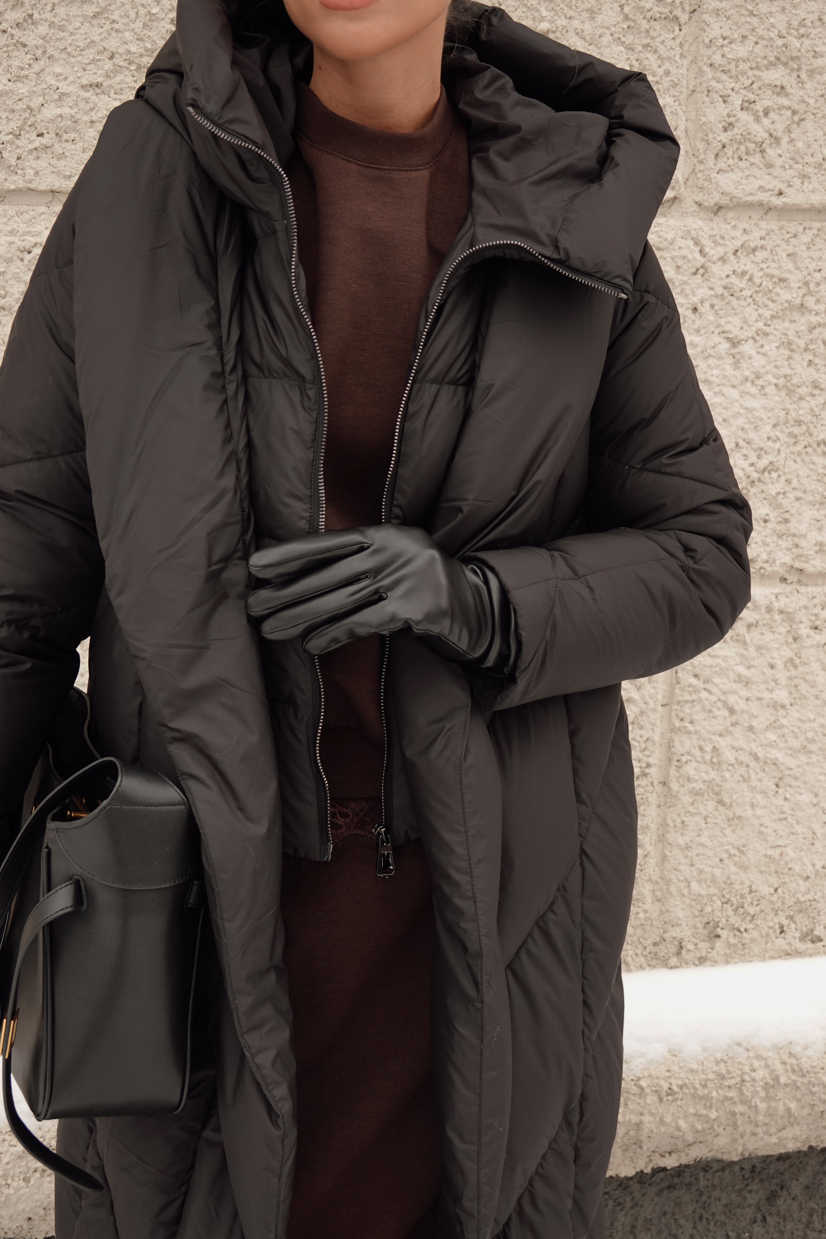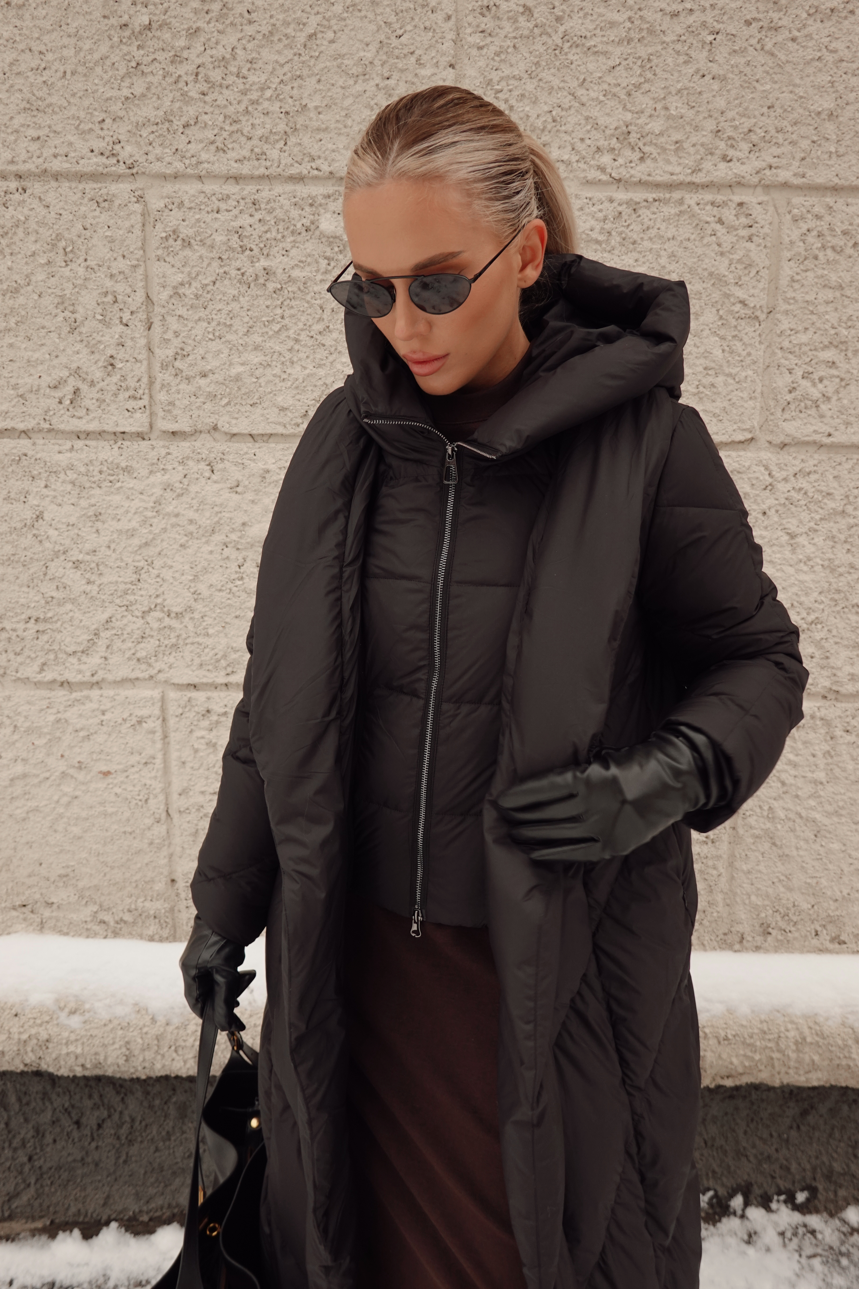 Пуховик в длине миди со съемной манишкой