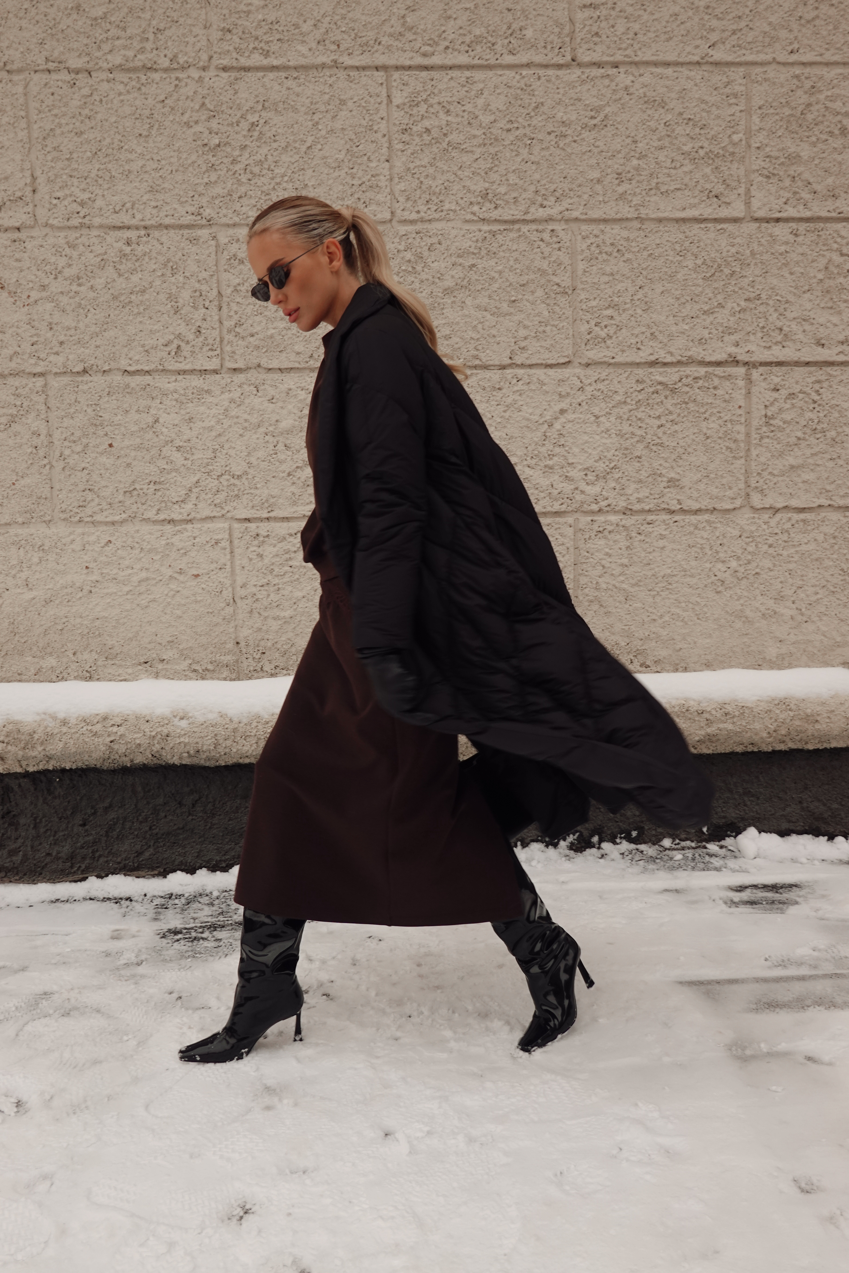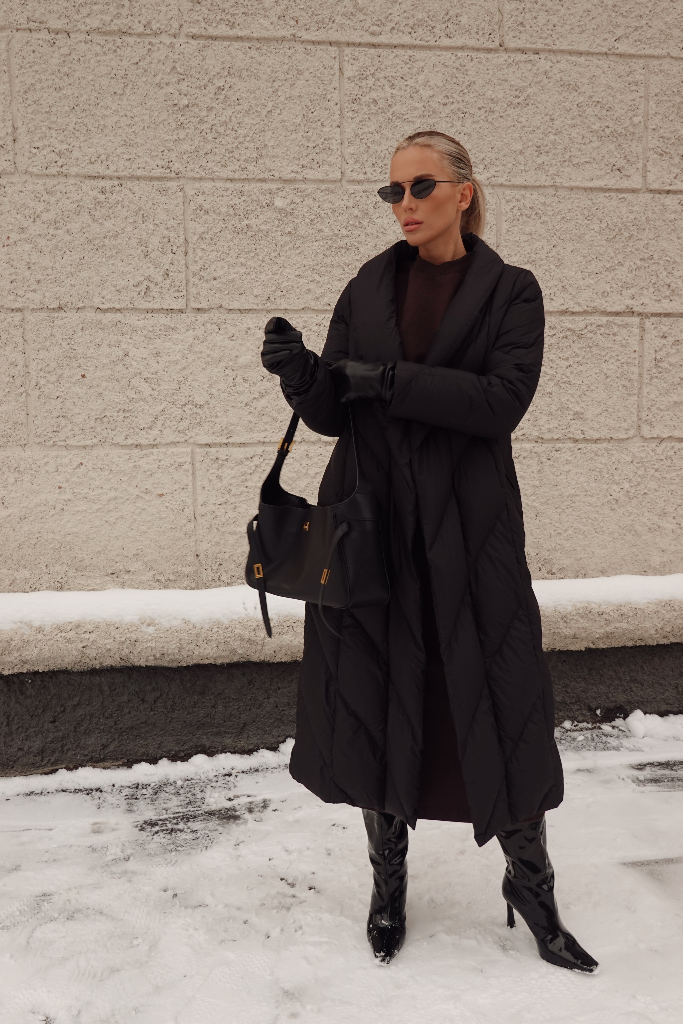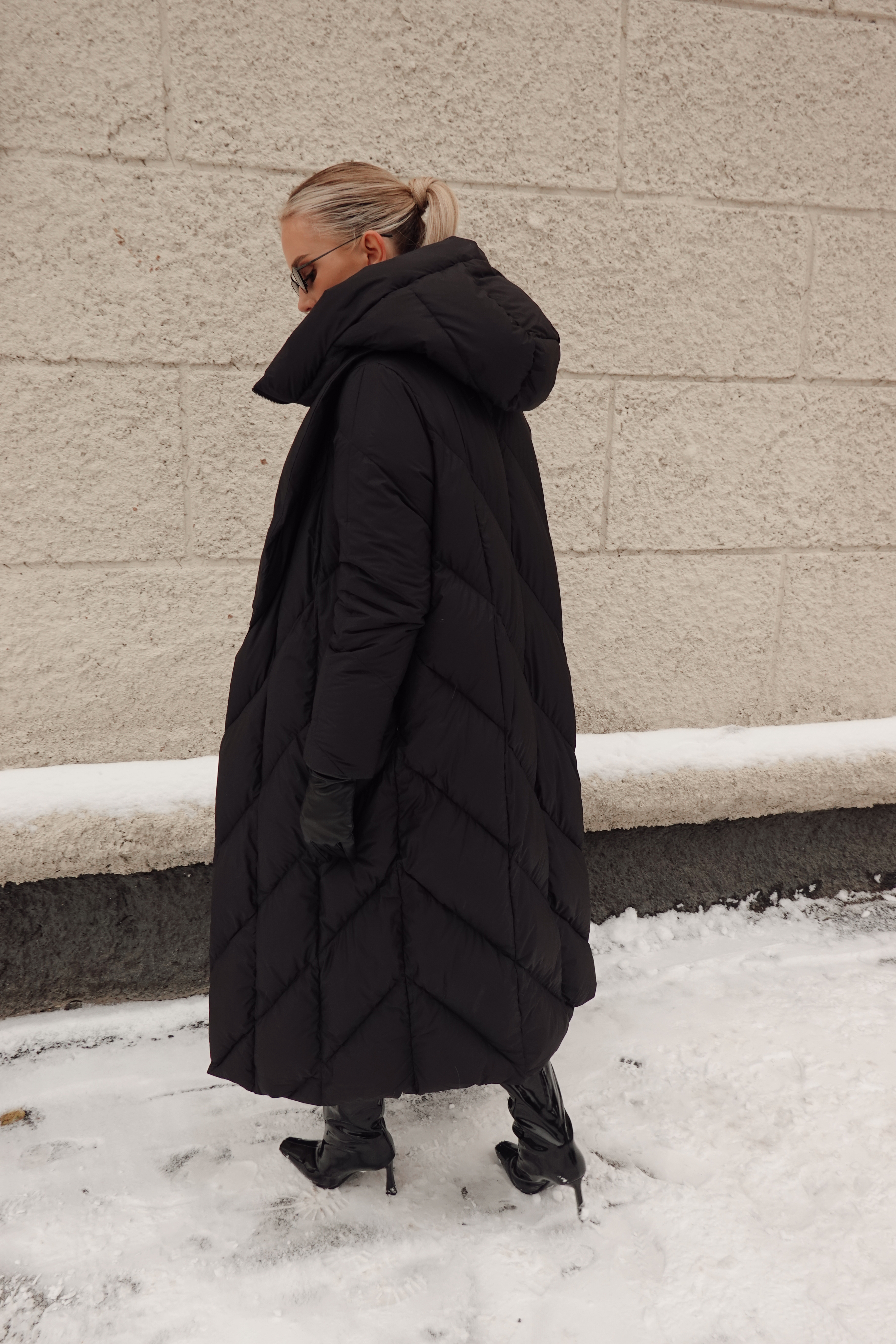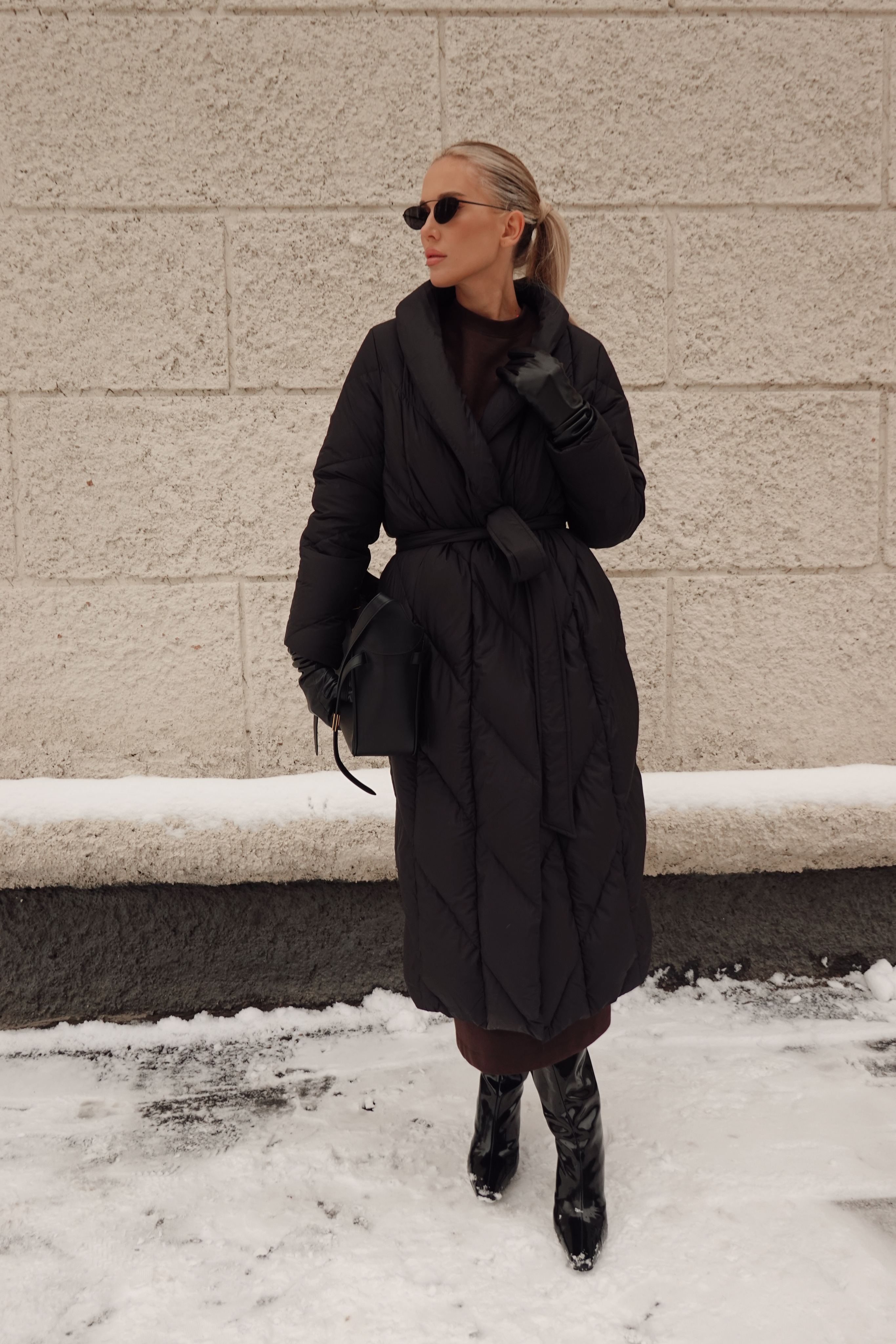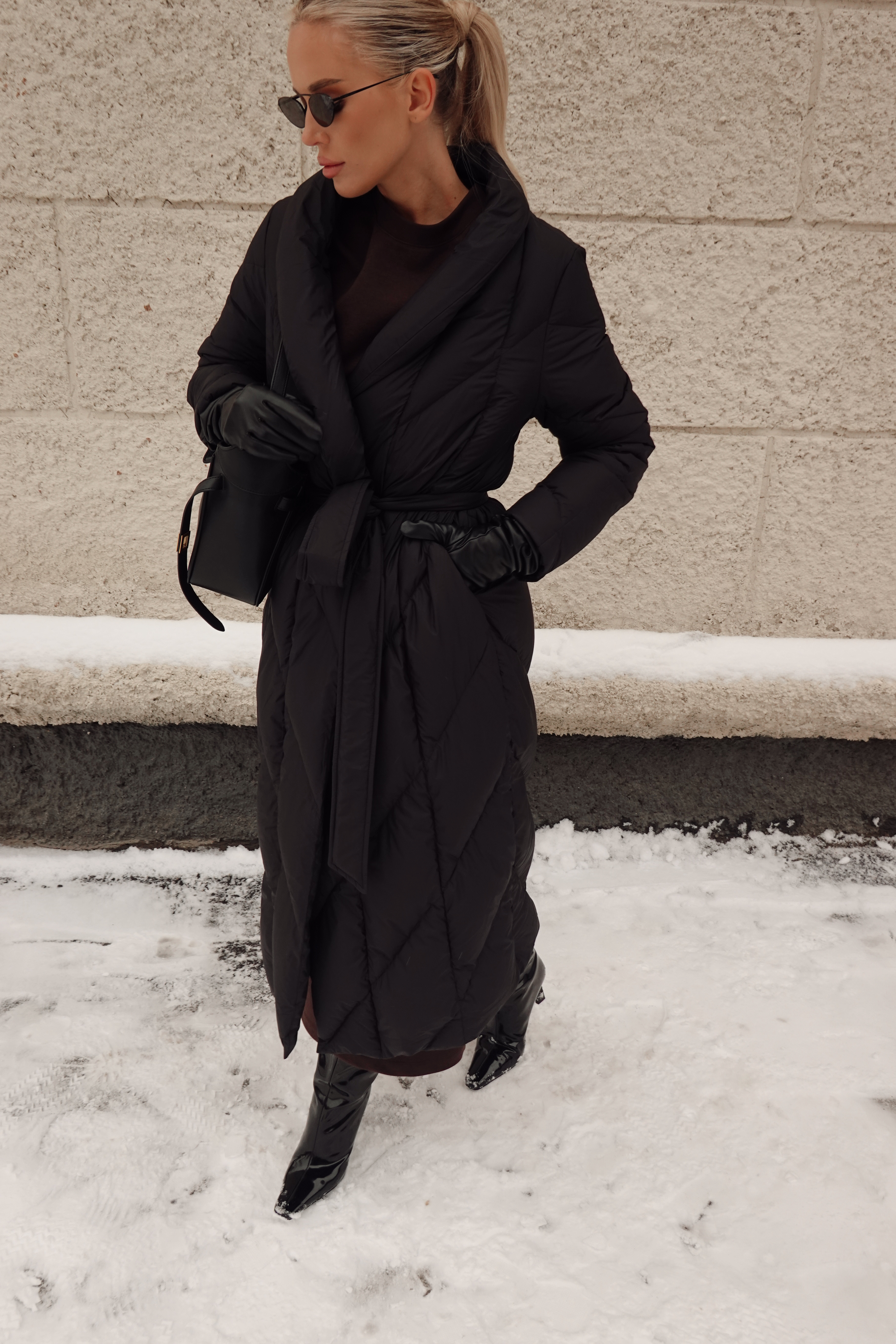 Пуховик в длине миди со съемной манишкой